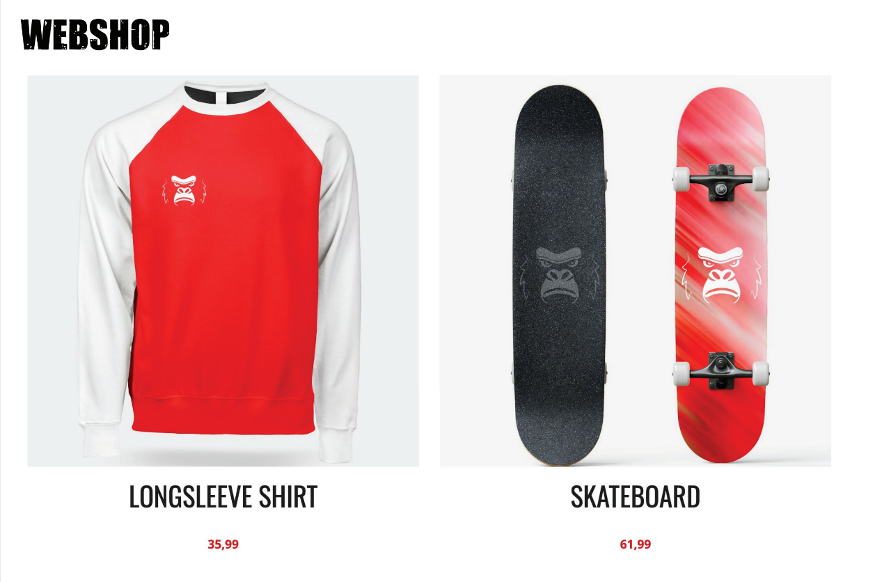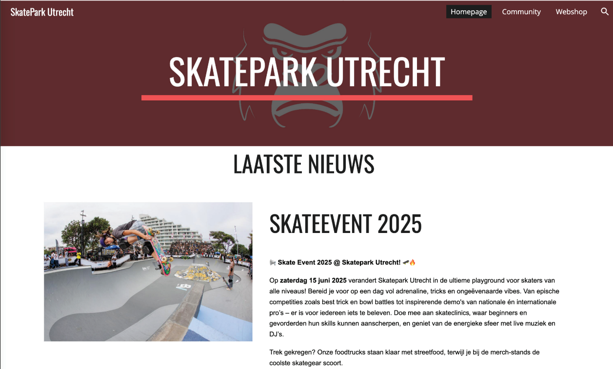 Voor een schoolproject kregen we de opdracht om een nieuwe branding te ontwikkelen voor Skatepark Utrecht. Het doel was om het park een frisse, stoere uitstraling te geven die past bij de skatescene. Samen met mijn projectgroep hebben we gekozen voor een krachtige mascotte: een gorilla. Deze staat symbool voor kracht, lef en stoerheid – precies wat je terugziet in de skaters die daar dagelijks hun tricks oefenen.