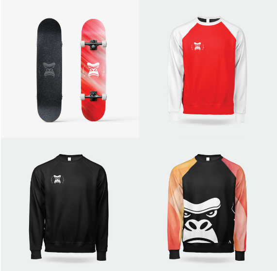 Een tof detail is dat in de wenkbrauw van de gorilla een skateboard verwerkt zit. Zo zit de link met skaten subtiel in het beeldmerk verwerkt, zonder dat het te letterlijk wordt.